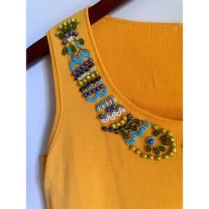 Y2K Beaded Tank Top Yellow/Turquoise Size M Embellished Hippie Boho Western