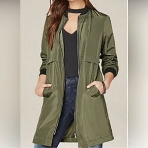 Y2K Bebe $98 Long Bomber Utility Jacket - Military / Olive Green - XS (0-2)