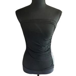 Arden B Black Strapless Tube Top – NWT, originally $44. Stretchy fit with ruched sides and a vertical black-and-white checkered stripe. Style: Tube Wide Check.