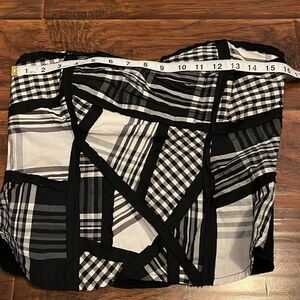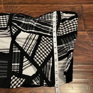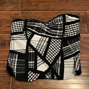 Bebe Black White Strapless Multi Print Top, size large, new with out tags. Does come with straps in a small plastic bag.