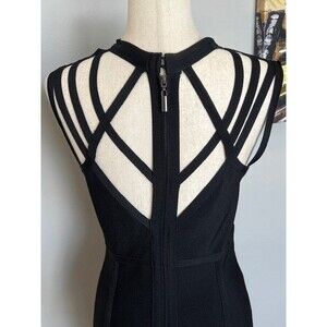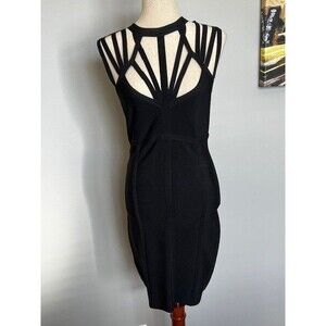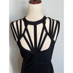 RARE Find...Sexy black bebe Camilla Cage Yoke Bandage Bodycon dress Size Medium