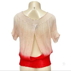 Bebe Silk New Rio Red Ombré Tie Dye Open Back Cut Out Gauze Boho Top