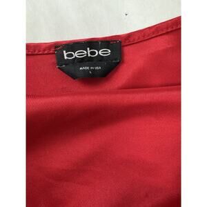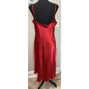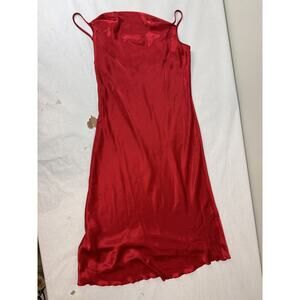 Y2K Bebe Red Satin Size L Cowl Neck Slip Dress Vintage Midi Bodycon Sexy USA