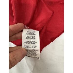 This product is a vintage Y2K Bebe red satin slip dress in size L with a cowl neck, a midi length, and a bodycon style. It features a sleeveless design with strappy sleeves and a pullover closure. The dress is perfect for special occasions like weddings and parties, and it is made from stretchy polyester material. It is designed to accentuate the sexy theme and is handmade in the USA. This dress is a timeless piece that exudes sophistication and style, ideal for any season.