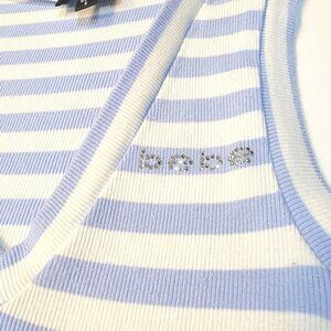 Y2K Bebe Rhinestone Tank Top Sz S Blue White Striped Stretch Knit
