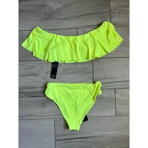 Y2K Bebe Two Piece Swimsuit With Rhinestone Logo Neon Yellow Size Large NWT