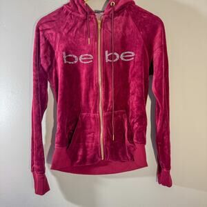 Y2K Bebe Velour Rhinestone Zip-Up Hoodie | Maroon Track Jacket Bling XS
