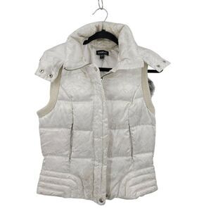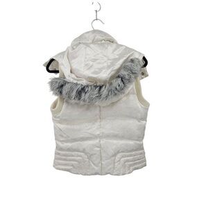 Y2K Bebe White Quilted Hooded Vest Faux Fur Trim M Logo Print Chic City