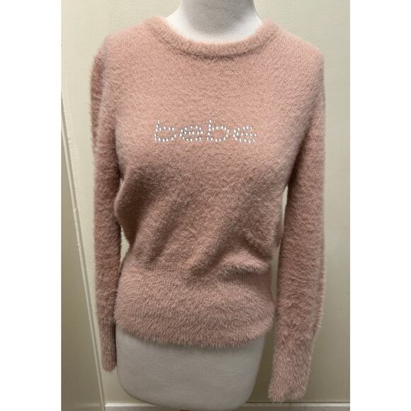 Y2K Bebe Women's Embellished Logo Pink Fuzzy Long Sleeve Sweater - Size M