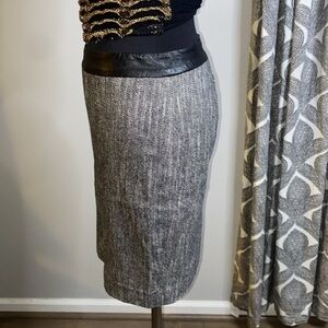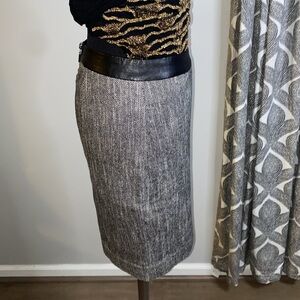 Y2K Bebe leather trimmed pencil skirt. Size 6. In excellent pre loved condition. Waist measures 29” & skirt is 18” long.