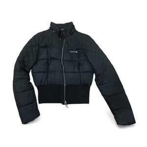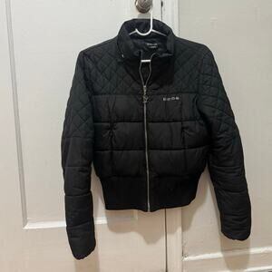 Bebe size medium black cropped puffer jacket rhinestone logo. Such a rare y2K find