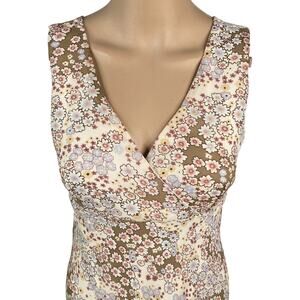 Y2K Beige Pink Ditsy Floral Empire Babydoll Fairy Slip Dress SZ S