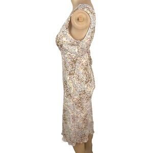 Vtg Y2K Jump Beige Pink Ditsy Floral Empire Babydoll Fairy Slip Dress