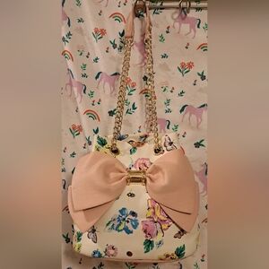 Y2K Betsey Johnson Hopelessly Romantic Vegan Floral Bee Butterfly Bucket Purse