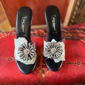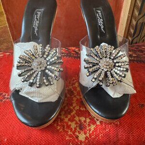 ✨ Y2K Betsey Johnson Starburst Heels – Clear Strap Black Base Size 7 – NWOT