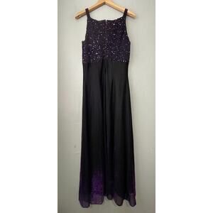 Betsy & Adam Jaslene sleeveles sparkly metallic purple / black gown / dress in Great vintage condition. It's so hard to see the beauty of this dress in the pictures. It is actually a sparkly metallic purple when you are looking down on the dress. It has a iridescent effect when wearing.