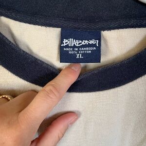 Y2K Billabong Navy Blue and Tan Long Sleeve Thermal Shirt