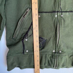 Y2K Blac Label Sweatshirt Full Zip Women's 2X Olive Green Embroidered Metal Punk