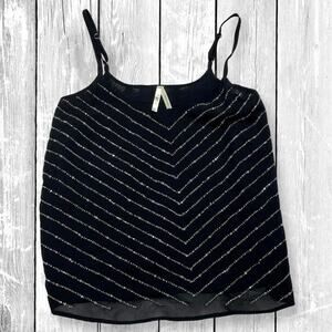 Y2K Black Babydoll Tank M Beaded Chiffon Glam Party Vintage Nordstrom