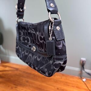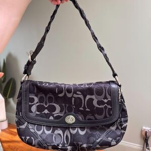 Y2K Black Canvas Coach Chelsea Optic Signature Flap Shoulder Purse - Style 10993