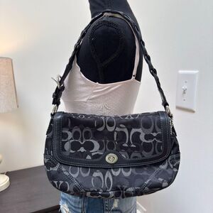 Coach Chelsea Optic Signature Flap Shoulder Purse - Style 10993 in black canvas with braided straps & silver hardware \ Y2K COACH SHOULDER BAG