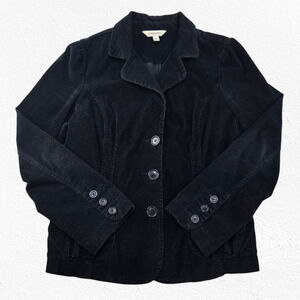 Y2K Black Corduroy Front Button Collared Welt Pockets Classic Jacket Size Large