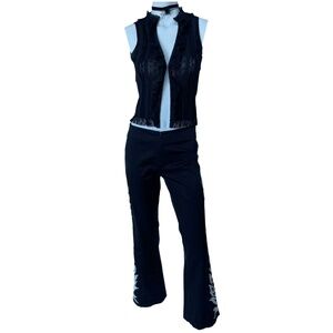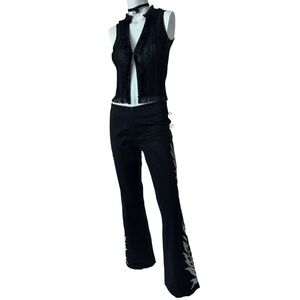 Y2K Black Embroidered Leaf Pants – Size 2 (Low Rise Bootcut)