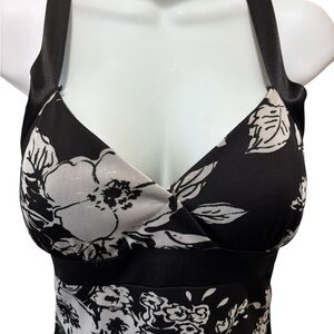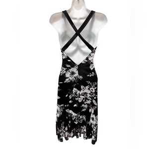 Y2K Black Floral Fairy Slip Halter Dress M Black Gray Criss Cross Cut Out Back