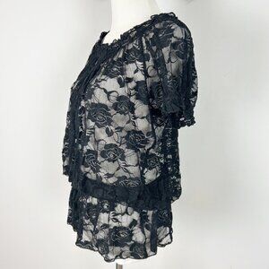 Y2K Black Floral Rose Mesh Top Whimsigoth Fairy See Through Romantic Size 2X Wom