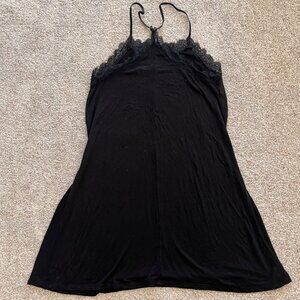 Y2K Black Flowy Fitted Halter Mini Dress with Lace Trim S