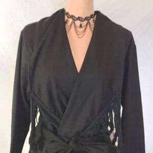 Y2K Black Fringed Waterfall Belted Midi Whimsigoth Jacket Small NWT