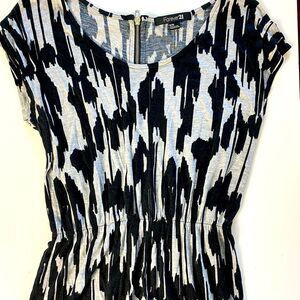 Y2K Black + Gray Abstract Soft Flowy Dress w/ Zip Back Cinched Waist Size Medium