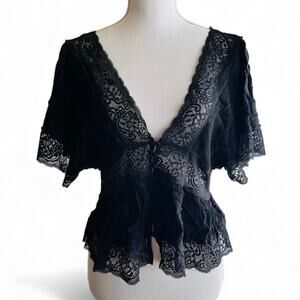 Y2K Black Lacy Babydoll Top Size M Whimsigoth Feminine Coquette Going Out Top