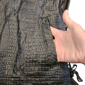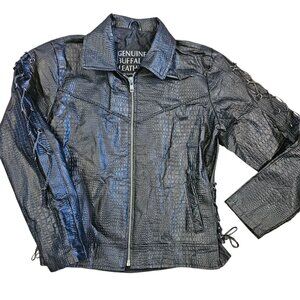 Y2K Black Leather Laceup Jacket Black Embroidered Roses On Back Sz L Biker Goth