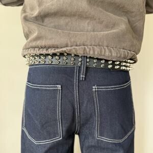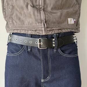 Unisex black leather belt with silver studs for a bold punk-inspired Y2K look