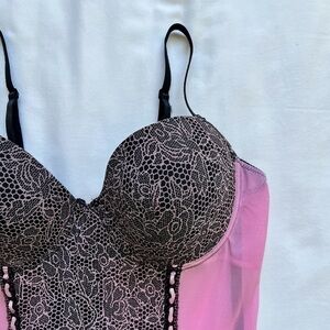 Y2K Black & Pink Corset Bustier Cropped Tank Top