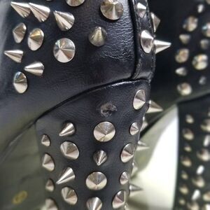 Y2K Black Spike Platform Ankle Boots Women Goth Punk Skull Spikes Sz 6 Victoria