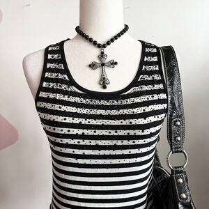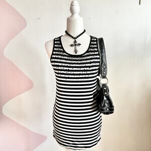 Y2K Black Striped Mini Dress, Goth Grunge 2000s Edgy Indie Sleaze