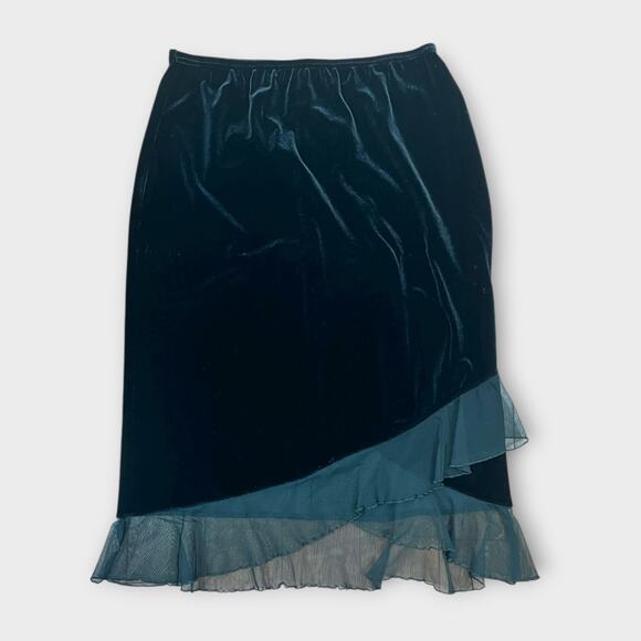 Y2K Black Velvet Chiffon Ruffle Hem Asymmetrical Skirt Medium Goth Whimsy Goth
