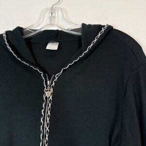 Y2K Black Zip Up Hoodie Jacket Tribal Embroidery Boho Goth Festival Large