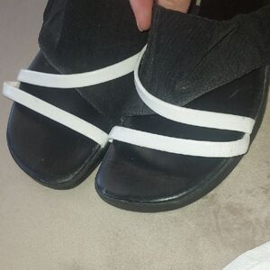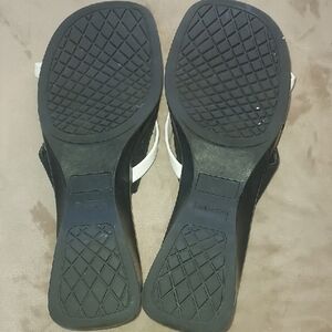 Step out in style with these elegant sandals. Featuring a chic black and white design, these shoes are perfect for any occasion. Enjoy comfort and sophistication with every step.