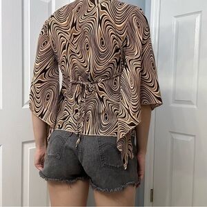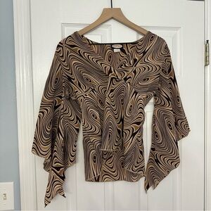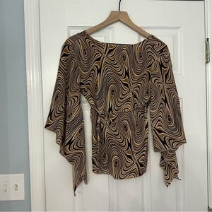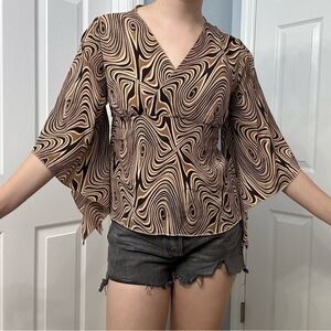 Y2K Blouse Flare Sleeve Hippie Boho Striped Abstract Fairy Casual Size Medium