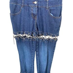 .Vtg Y2K Neeso Blue Denim Jean Lace Up Chain Cut Out Jumpsuit