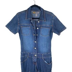 Y2K Blue Denim Jean Lace Up Chain Cut Out Jumpsuit SZ 9