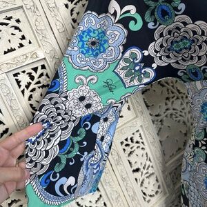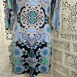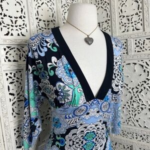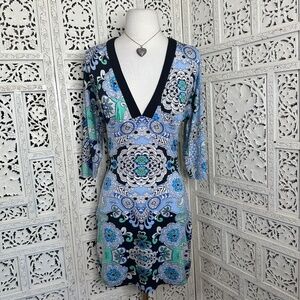 Y2K Blue & Green Baby Phat V Neck Bodycon Tie Back 3/4 Sleeve Dress Sz S/M
