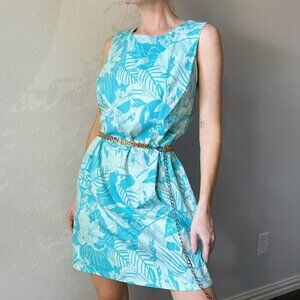 Y2K Blue Hawaiian Flower Print Back Cutout Mini Dress