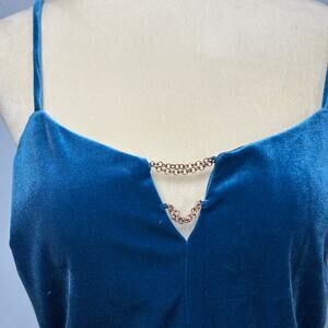Y2K Blue Velvet Cami Crop Top Chain Detail Strappy Grunge Coquette Bustier XL
