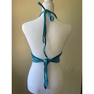 Y2K Blue Velvet O-Ring Halter Top – Size Small