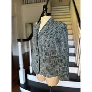 Y2K Blue Wool Tweed Blazer Professional Career Office Church Fall Winter Modest