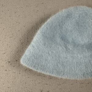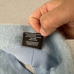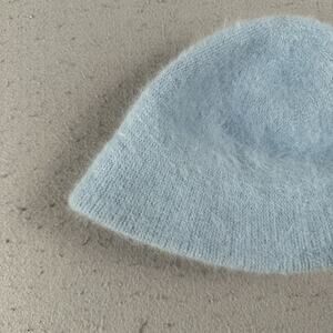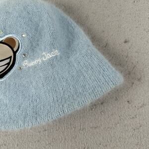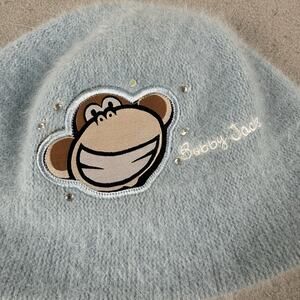 Y2K Bobby Jack Girls Fuzzy Angora Beanie Hat Blue Monkey Embroidered Knit Retro